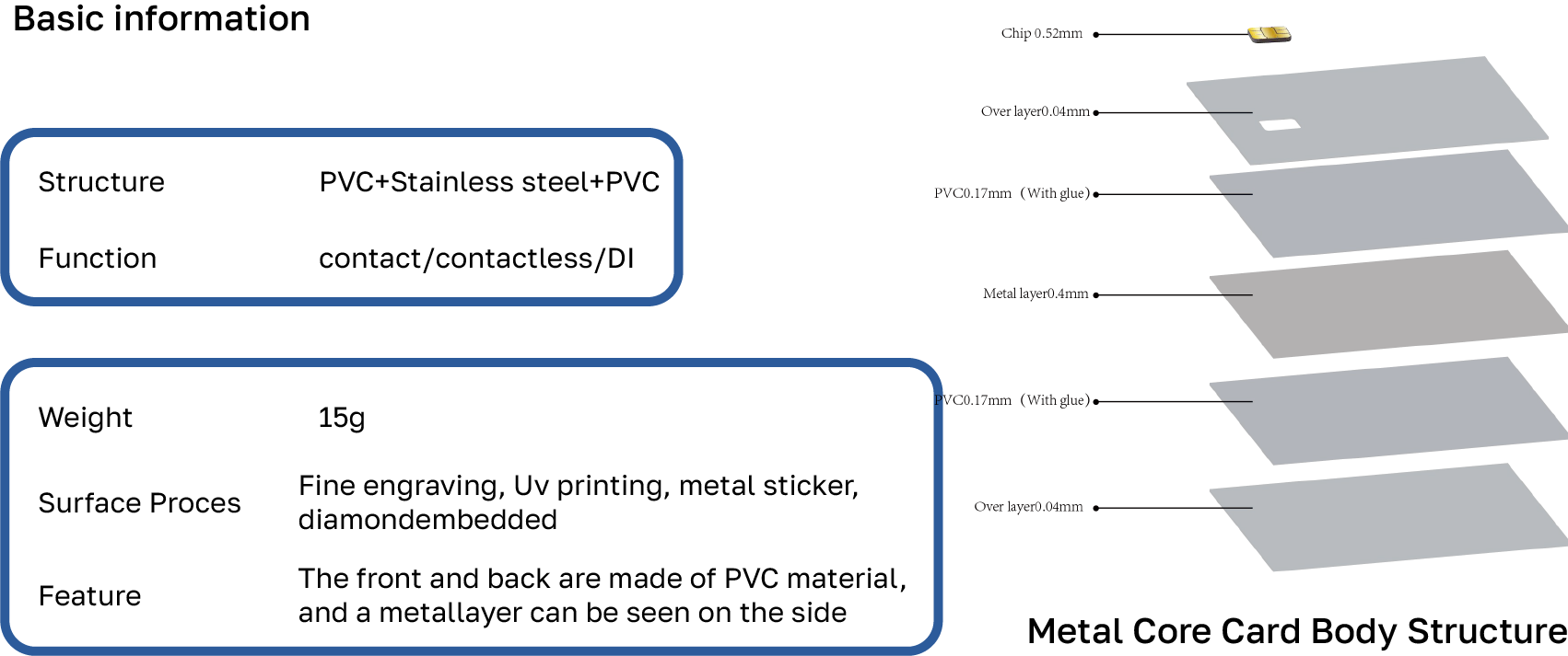 Metal Core Card--PVC+ Stainless Steel+PVC