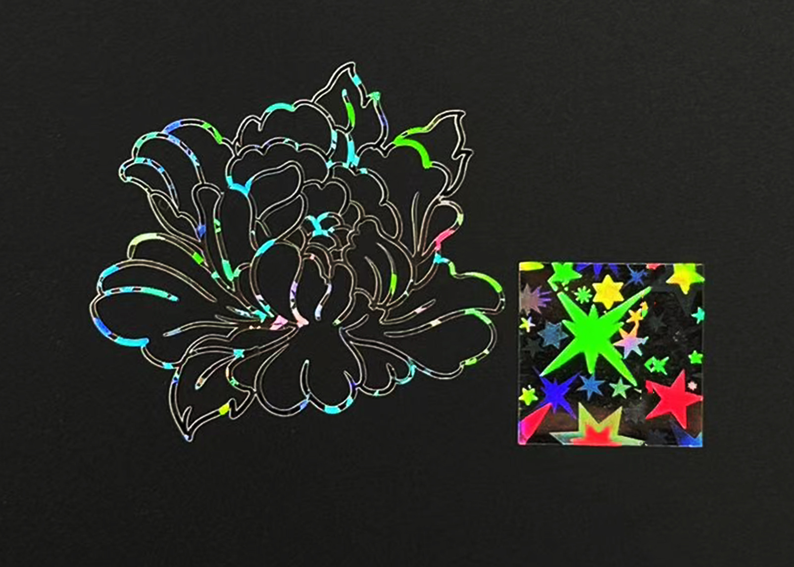 Different holographic effects. The material and processing technology of Metal Sticker are the same, but different holographic texture plates are used for electroforming, resulting in varying holographic texture effects on the product. The existing six holographic Metal Sticker variants exhibit six distinct dazzling patterns.