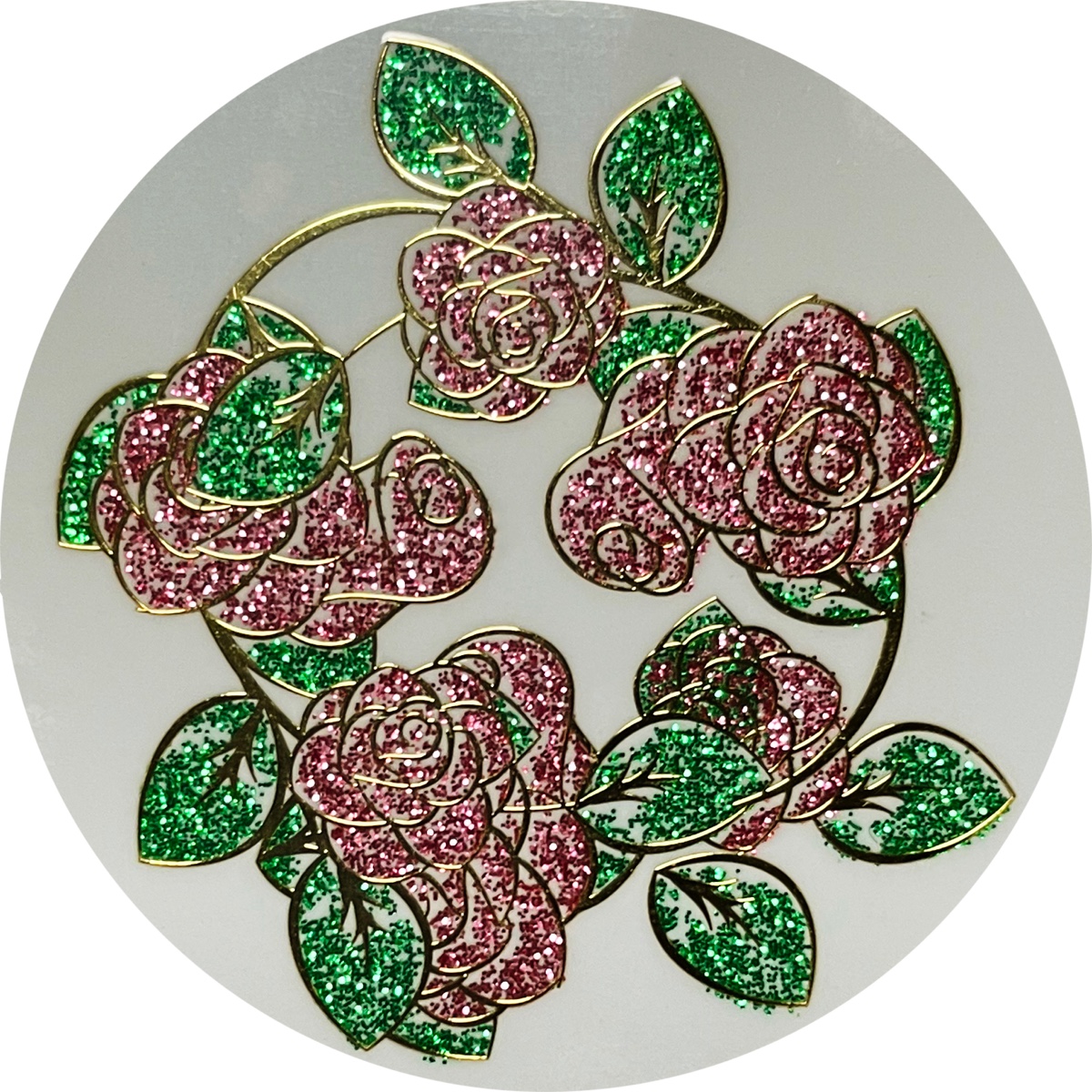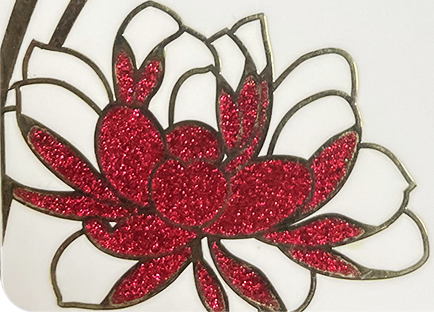 Glitter Powder Metal Sticker presents a sparkling effect and has a good reflective effect. It is generally used in some parts of the product to achieve a good decorative effect.